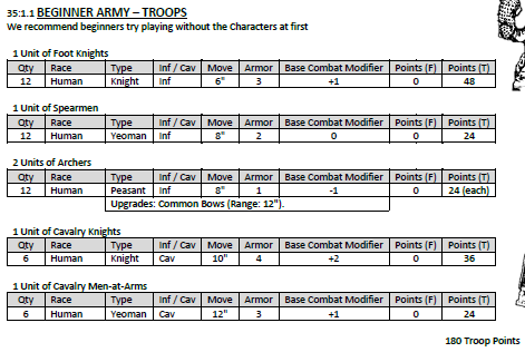 From the get-go, the rules encourage you to Keep It Simple, Stupid and tell you to use a beginner army to learn with. (found in section 35:1.1, mind you, which is in Book 2 – Building An Army) You stick with just basic troops and to concentrate on learning the four basic events in the game: