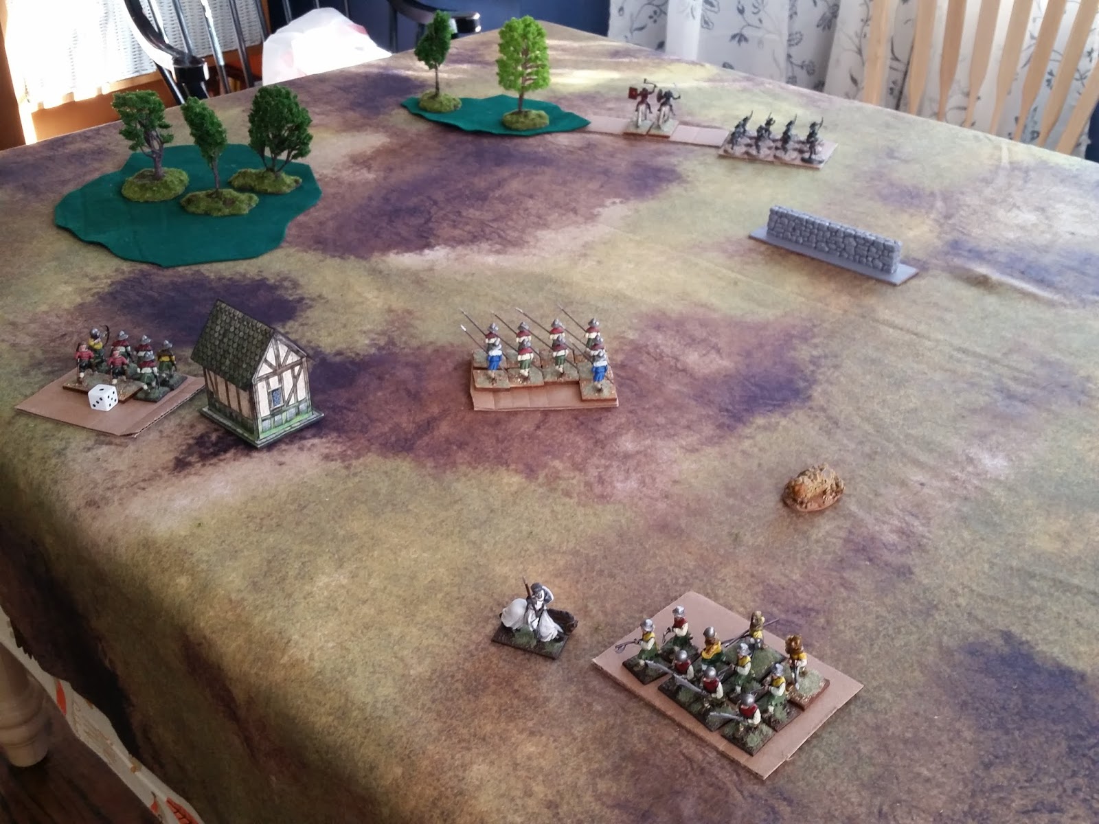 That's not quite what was happening. My archers were 10" away from the edge of the board. They routed. To do my rout move, I initially mistakenly moved them 12" (still stuck on thinking like skirmish archers, which move 12"….) and came up with that scenario. In fact, they only moved 8" and stayed put.
