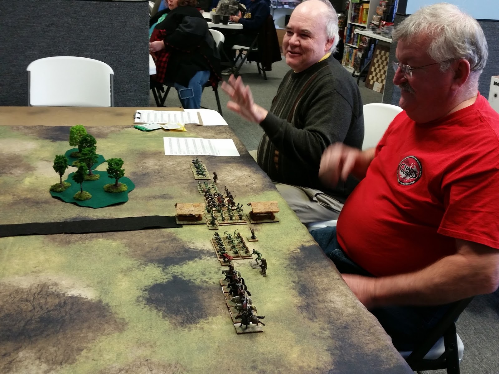 This past Saturday, I drove down to Indianapolis to Saltire Games (http://www.saltiregames.com) to get some training. Saltire Games is a great little game store on the northeast side of Indy. It’s owned by Phil Herthel and JD Cash. Besides having great games, they have a ton of open space and were very accommodating to the group of us.
