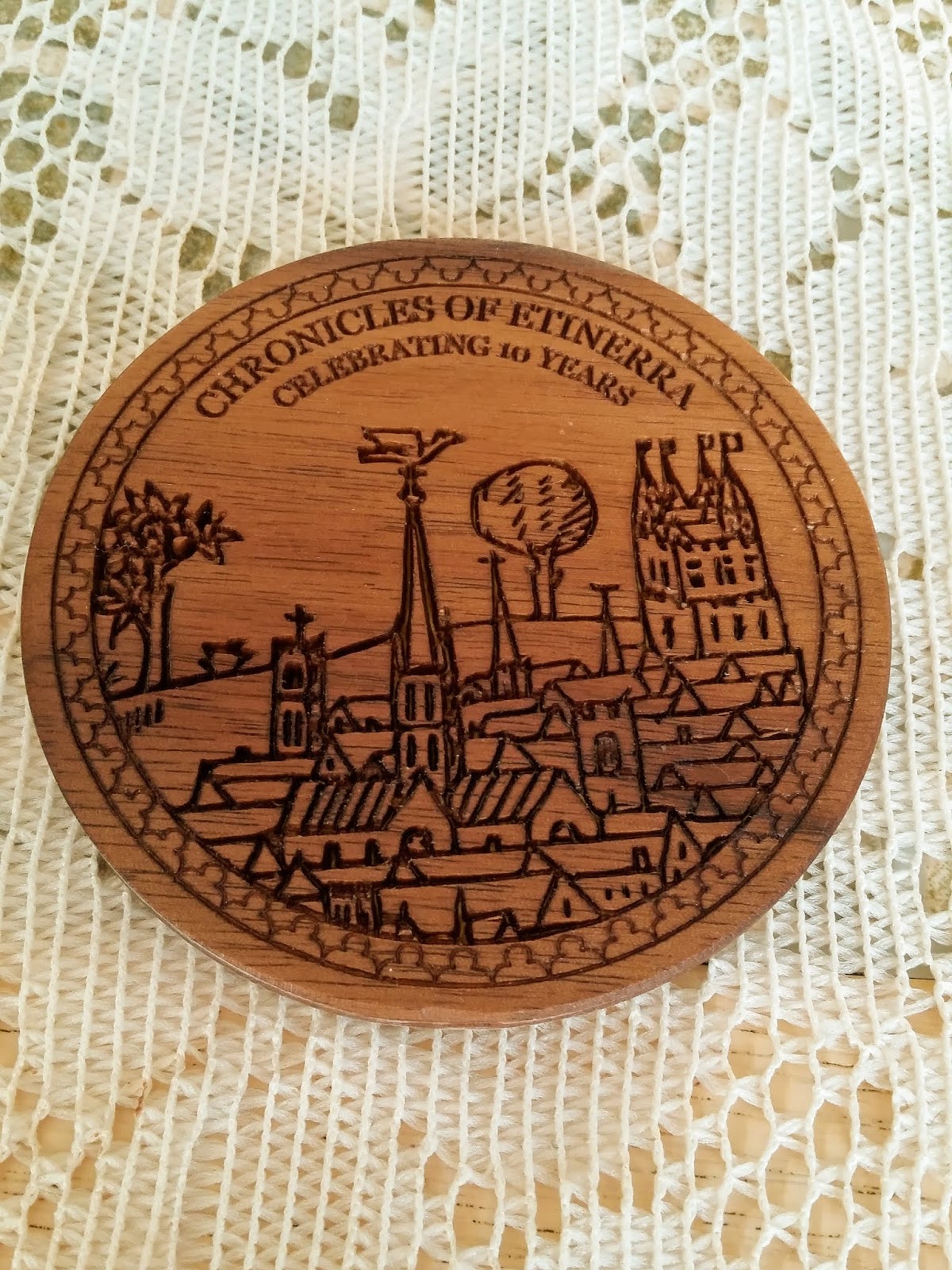 By now, I think my Rizzoma folks have received their gifts, so I will share with you all what I gave as tenth anniversary keep-sakes. I bought some goldenrod paper and printed off AD&D character sheets and Permanent Record Portfolios for all my players and their characters. I also commissioned a gentleman in Wisconsin, Alex of RPG Coasters, to produce custom 10th anniversary wood coasters and gave one to each player. Alex did a fantastic job and I highly recommend checking out his wares.