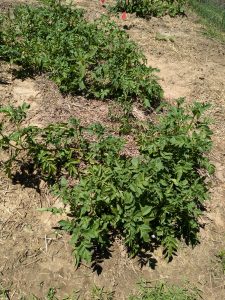 June was wet here! I didn’t do much watering, just weeding and making sure things grew. Some of the tomatoes were doing well, others… not so well. The potatoes went off like gang-busters and so did the beans and corn! The peas, cabbage and chard… not so much. 🙁